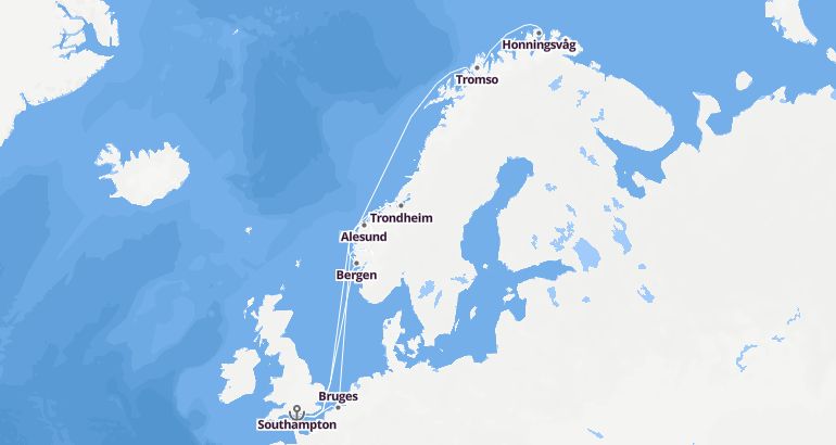 شمال أوروبا : إنكلترا، بلجيكا، النرويج - سيليبرتي أباكس الميناء : ساوثهامبتون المدة : 15 أيام السفينة : سيليبرتي أباكس الشركة : سيليبرتي كروزز أفضل الرحلات البحرية 2019-2020 مسار الرحلة: ساوثهامبتون، بروج، فلام، جيرانجر، ترومسو، هونينعسفاج، تروندهايم، اليسوند، أولدن، بيرغن، ساوثهامبتون إكتشف المسار