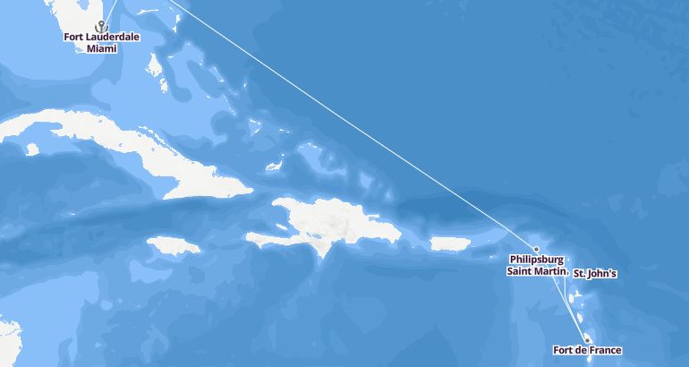 رحلات البحر الكاريبي - جزر الهند الغربية جزر الأنتيل : الولايات المتحدة، جزر الأنتيل الهولندية، مارتينيك، أنتيغوا وبربودا، سانت كيتس ونيفيس - سيليبرتي أسنت الميناء : قلعة لودرديل - ميامي المدة : 11 أيام السفينة : سيليبرتي أسنت الشركة : سيليبرتي كروزز أفضل الرحلات البحرية 2019-2020 مسار الرحلة: قلعة لودرديل - ميامي، فيليبسبورج سان مارتن، فور دو فرانس، سان جونس، باستير، قلعة لودرديل - ميامي إكتشف المسار