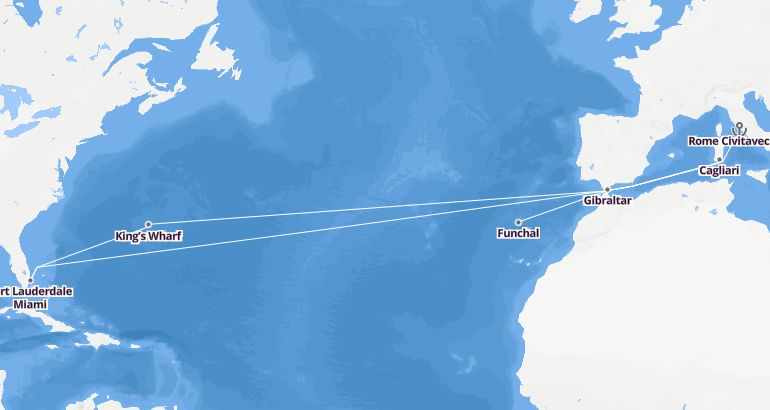 رحلة بحرية عبر المحيط الأطلسي : إيطاليا، جبل طارق، جزيرة ماديرا، برمودا، الولايات المتحدة - سيليبرتي أسنت الميناء : روما تشيفيتافيكيا المدة : 15 أيام السفينة : سيليبرتي أسنت الشركة : سيليبرتي كروزز أفضل الرحلات البحرية 2019-2020 مسار الرحلة: روما تشيفيتافيكيا، كالياري، جبل طارق، فونشال، كينغز وارف، قلعة لودرديل - ميامي إكتشف المسار