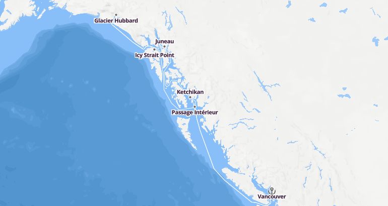 الوجهة ألاسكا : كندا، ألاسكا - سيليبريتي سولستيس الميناء : فانكوفر المدة : 8 أيام السفينة : سيليبريتي سولستيس الشركة : سيليبرتي كروزز أفضل الرحلات البحرية 2019-2020 مسار الرحلة: فانكوفر، ممر داخلي، نقطة مضيق الجليدية، هوبارد الجليدي، جونو، كيتشيكان، ممر داخلي، فانكوفر إكتشف المسار