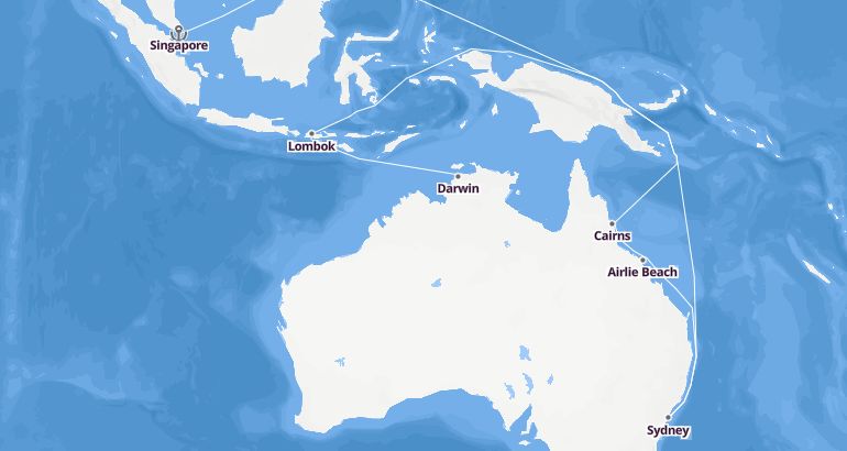 كروز استراليا ونيوزيلندا : سنغافورة، إندونيسيا، أستراليا - سيليبريتي سولستيس الميناء : سنغافورة المدة : 14 أيام السفينة : سيليبريتي سولستيس الشركة : سيليبرتي كروزز أفضل الرحلات البحرية 2019-2020 مسار الرحلة: سنغافورة، لومبوك، داروين، كيرنز، شاطئ إيرلي، سيدني إكتشف المسار