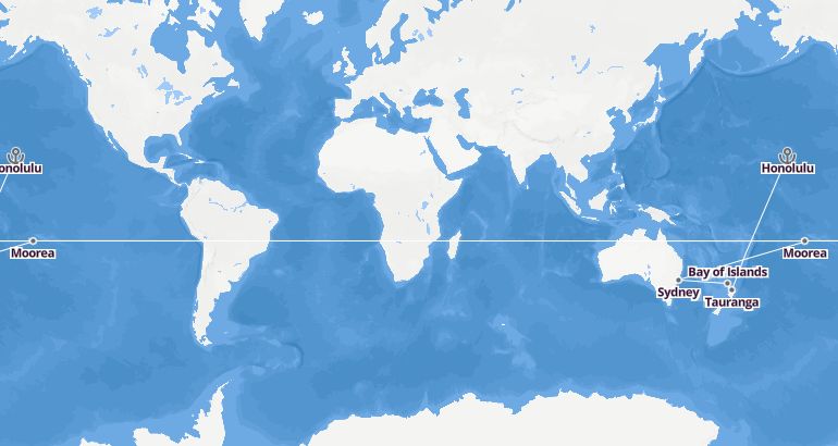 رحلة بحرية عبر المحيط : هاواي، بولينيزيا الفرنسية، نيوزيلندا، أستراليا - سيليبريتي سولستيس الميناء : هونولولو المدة : 20 أيام السفينة : سيليبريتي سولستيس الشركة : سيليبرتي كروزز أفضل الرحلات البحرية 2019-2020 مسار الرحلة: هونولولو، موريا، بابيتي، رايات، تاورانجا، أوكلاند، خليج الجزر، سيدني إكتشف المسار