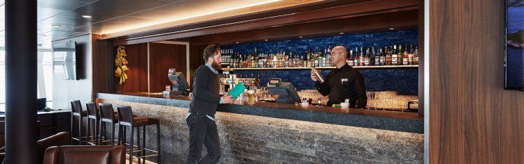 إذا كنت ترغب في تناول مشروب مع أحبائك أثناء الرحلة البحرية ، فستجد على متن MS Nordkapp ثلاثة بارات استثنائية! لاحتساء الكوكتيل الخاص بك أثناء تأمل المناظر الطبيعية الاسكندنافية ، انتقل إلى الطابق 7 في بار سفالبارد. يوفر بار الصالة هذا إطلالة رائعة على الأفق. يمكنك الاسترخاء مع مشروب في بار Polarsirkelen . للاستمتاع ببيرة جيدة أثناء الرقص ، يمكنك الذهاب إلى Femboringen ، والذي يوفر أجواء ودية مع قوائم التشغيل الإيقاعية.