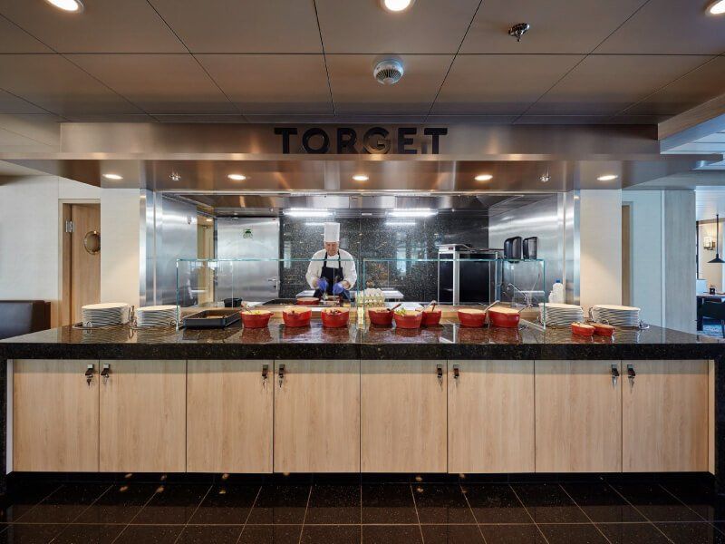 سوف تجد خيارين لتناول الطعام على متن MS Nordkapp. تقدم سفينة الرحلات وجبات الصباح و منتصف النهار و المساء في مطعمها الرئيسي. الإفطار والغداء سيكونان في شكل بوفيه . سوف تجد مجموعة واسعة من الأطباق الحلوة والمالحة. يمكنك أيضًا الخروج لتذوق التخصصات النرويجية أو اختيار طبق أكثر كلاسيكية مثل أنواع اللحوم أو الجبن أو السلطة على سبيل المثال. سيقدم لك الطهاة أطباق انتقائية خاصة في المساء. بين الحلوى أو اللحم البقري المطهو سوف تجد ما تبحث عنه ! يضمن لك المطعم قضاء وقت ممتع مع أحبائك في جو دافئ! يمكنك أيضا تناول العشاء في المطعم الثاني أصغر حجمًا ويوفر أجواء أكثر حميمية. بالنسبة للأشخاص الذين يتبعون حمية خاصة للطعام (خالي من الغلوتين ، نباتي ، إلخ) ، سيقدم لهم أطباقا خاصة !