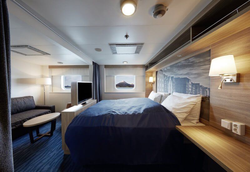 عند الإبحار على متن MS Nordkapp ، يمكنك حجز Arctic Superior تحتوي كلها على نوافذ. قد يكون البعض محظوظًا بما يكفي لحجز غرفة فاخرة في الجزء العلوي و يتمتع بشرفة . سوف تجد أيضًا داخل الغرف سريرين مفردين أو سرير مزدوج ، وطقم شاي وقهوة ، وحمام مع مرحاض ودش ، ومجفف شعر ، وخزنة وشاشة تلفزيون!
