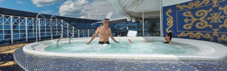 استفد من المسبح الوحيد المتاح على متن MS Riviera. يقع على سطح السفينة رقم 12 ، اثنان من أحواض الاستحمام الساخنة في مكان قريب. ارتشف كوكتيلًا على أحد كراسي الاسترخاء العديدة واستمتع بأشعة الشمس لإتقان لون بشرتك. يقدم "Waves Bar" العديد من الكوكتيلات والمشروبات الغازية لتجديد نشاطك بجانب المسبح.