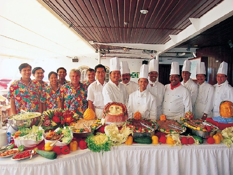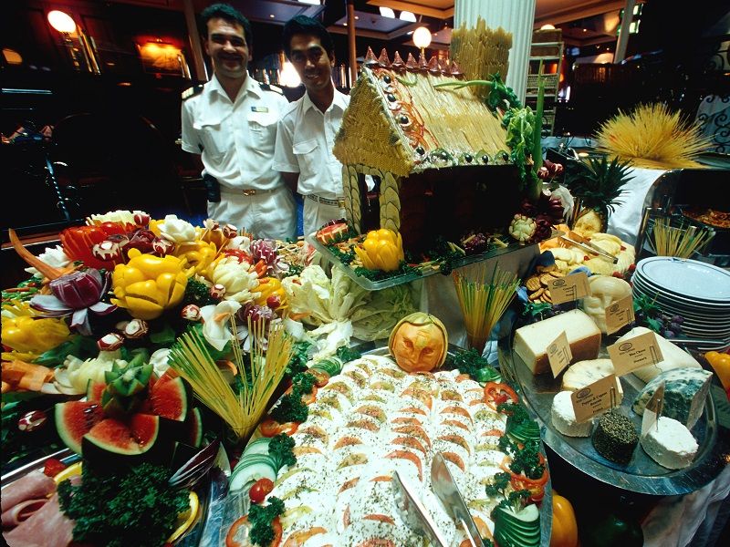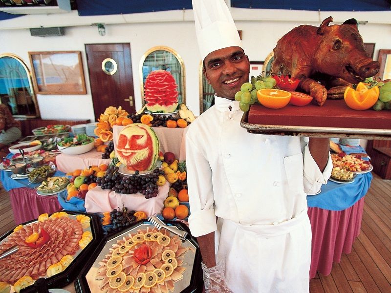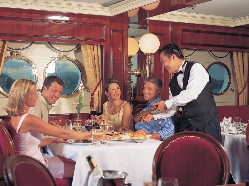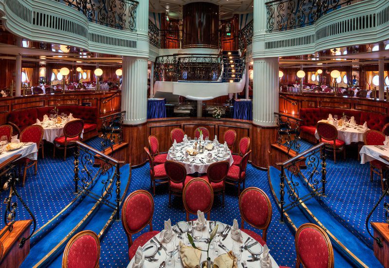 أثناء الكروز على متن السفينة Royal Clipper ، المطعم الكبير مفتوح على مدار اليوم في الصباح والظهيرة والمساء . يمكن للأتريوم أن يستوعب جميع الركاب في كل وجبة ويوفر لك أطباق لذيذة وخيارات واسعة. يمتد على ثلاثة طوابق يستقبلك في جو ودي ودافئ. سيكون لديك بوفيه للإفطار والغداء وسيكون لديك خيار من قائمة واسعة لتناول العشاء. المأكولات البحرية وقطع اللحم والخضروات النيئة ، سوف تستمتع طوال رحلتك البحرية.
