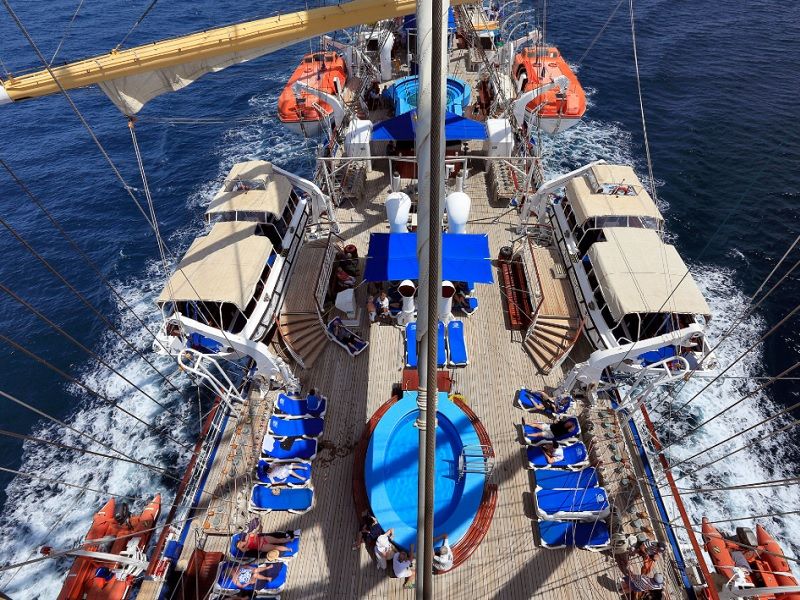 تقدم شركة Star Clippers اليوم سفينتها البحرية الشهيرة Royal Clipper. يبلغ طولها 134 مترًا وعرضها 17 مترًا ، ويمكنها استيعاب ما يصل إلى 227 مسافرًا يمكنهم الاستفادة من أسطحه المتعددة.
