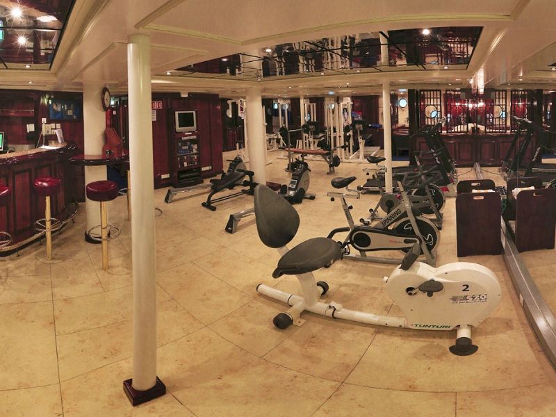 إذا كنت ترغب في ممارسة الرياضة لتحافظ على لياقتك ، فإن غرفة اللياقة البدنية في انتظارك على نفس السطح. تتوفر الآلات والأوزان والمعدات الرياضية. أخيرًا ، ينظم المدربون الرياضيون جلسات رياضية ، والتزلج على الماء ، والغوص أو حتى ركوب الأمواج ، لتجربة رحلة بحرية ملونة.