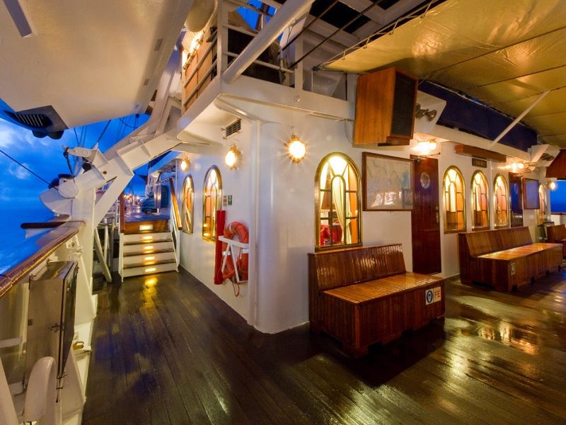الكثير من المتعة على متن Royal Clipper بفضل رحلاتك الاستكشافية. إذا كنت لا تخاف من المرتفعات ، يمكنك ممارسة التسلق في المكان المخصص في السفينة . استمتع بمنظر بانورامي خلاب. انطلق للاستمتاع بالإثارة من خلال التوجه إلى غرفة ألعاب السفينة لتحدي ركاب الكروز الآخرين. إذا كنت تفضل الاسترخاء ، فستجد مكتبة على متن السفينة. سوف تجد الكتب المحلية هناك ، والتي ستعلمك الكثير عن الحيوانات والنباتات التي ستصادفها أثناء رحلتك البحرية. على الأسطح الخارجية المختلفة للسفينة ، ستستمتع بالترفيه طوال رحلتك البحرية. الغناء والفكاهة والرقص ، سيكون هناك شيء للجميع ويقوم الفنانون بعروض فنية رائعة بحسب البرنامج . يقدم لك قبطان السفينة أيضًا قمة اليوم كل صباح ، لتقديم برنامج اليوم وبعض الحكايات عن العالم من حولك.