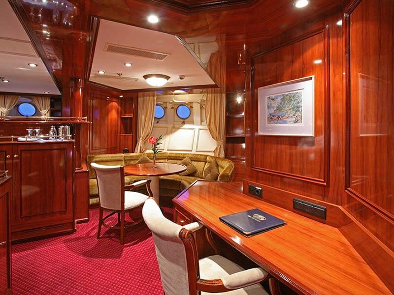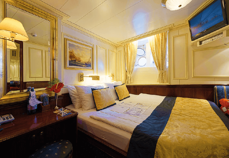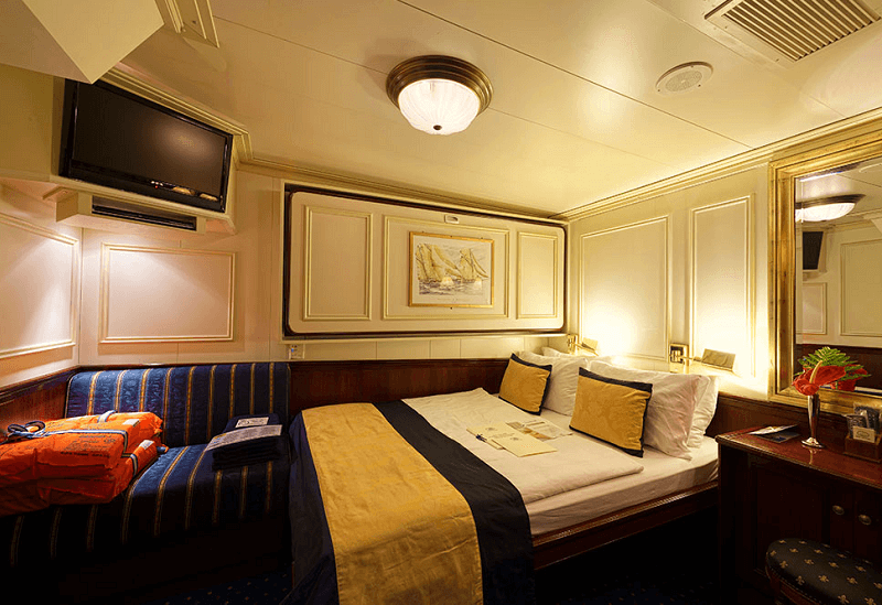 أجنحة Royal Clippers ، كلها مريحة و توجد بمساحات مختلفة لكنها توفر جميعها الراحة المثلى. أولاً وقبل كل شيء ، يحتوي الحمام الخاص على حوض استحمام من الرخام ومجفف شعر. بالنسبة لبقية الجناح ، فهو مجهز بمنطقة جلوس وميني بار وخزنة وتكييف. إذا كنت محظوظًا ، فإن بعض الأجنحة مجهزة بشرفة أرضية خاصة توفر لك إطلالة رائعة على المناظر الطبيعية التي ستصادفها أثناء رحلتك البحرية. مثالية للاستمتاع بعجائب البحر ومشاهدة غروب الشمس الساحر كل مساء.
