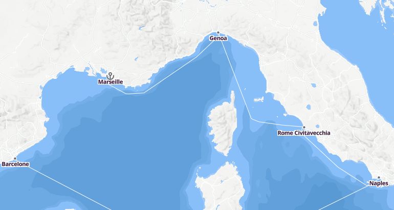البحر المتوسط : فرنسا، إيطاليا، إسبانيا - إم إس سي فانتازيا الميناء : مرسيليا المدة : 6 أيام السفينة : إم إس سي فانتازيا الشركة : إم إس سي كروز مسار الرحلة: مرسيليا، جنوة، روما تشيفيتافيكيا، نابولي، برشلونة إكتشف المسار