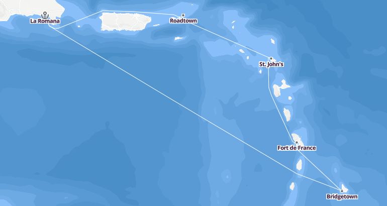 كروز البحر الكاريبي : جمهورية الدومينيكان، بربادوس، مارتينيك، أنتيغوا وبربودا، جزر فيرجن - إم إس سي أوبرا الميناء : لا رومانا المدة : 8 أيام السفينة : إم إس سي أوبرا الشركة : إم إس سي كروز مسار الرحلة: لا رومانا، جزيرة كاثرين، بريدجتاون، فور دو فرانس، سان جونس، رودتاون، لا رومانا إكتشف المسار