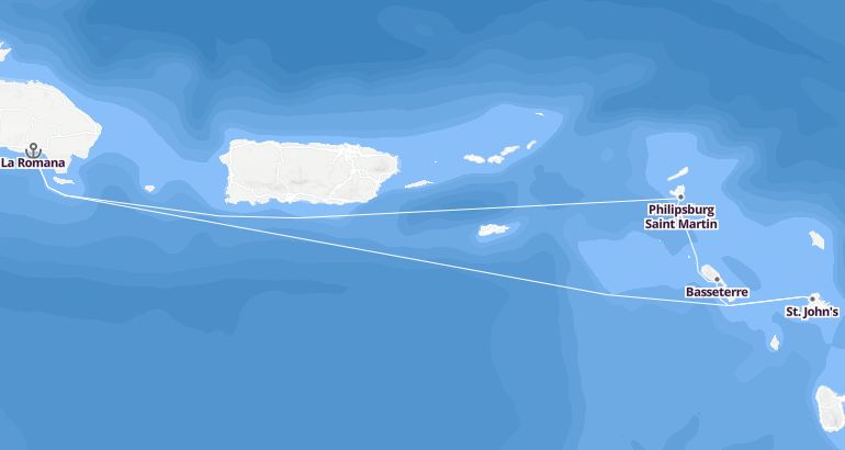 كروز البحر الكاريبي : جمهورية الدومينيكان، جزر فيرجن البريطانية، جزر الأنتيل الهولندية، سانت كيتس ونيفيس، أنتيغوا وبربودا - إم إس سي أوبرا الميناء : لا رومانا المدة : 8 أيام السفينة : إم إس سي أوبرا الشركة : إم إس سي كروز مسار الرحلة: لا رومانا، جزيرة كاثرين، فيرجن جوردا، فيليبسبورج سان مارتن، باستير، سان جونس، لا رومانا إكتشف المسار