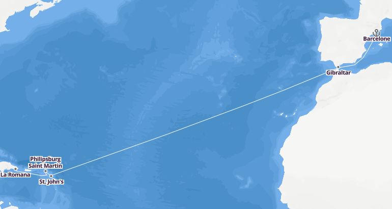 عبر المحيطات : إسبانيا، المغرب، أنتيغوا وبربودا، جزر الأنتيل الهولندية، سانت كيتس ونيفيس، جمهورية الدومينيكان - إم إس سي أوبرا الميناء : برشلونة المدة : 15 أيام السفينة : إم إس سي أوبرا الشركة : إم إس سي كروز مسار الرحلة: برشلونة، طنجة، سان جونس، فيليبسبورج سان مارتن، باستير، لا رومانا إكتشف المسار