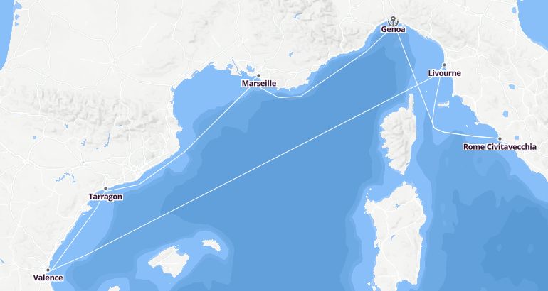البحر المتوسط : إيطاليا، فرنسا، إسبانيا - إم إس سي أوركسترا الميناء : جنوة المدة : 8 أيام السفينة : إم إس سي أوركسترا الشركة : إم إس سي كروز مسار الرحلة: جنوة، مرسيليا، طركونة، بلنسية، ليفورنو، روما تشيفيتافيكيا، جنوة إكتشف المسار