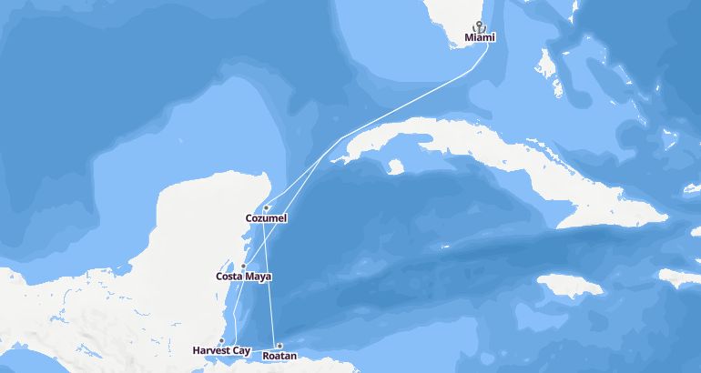 منطقة البحر الكاريبي - المكسيك - كوبا : الولايات المتحدة، المكسيك، هندوراس، بليز - نرويجيان إسكايب الميناء : ميامي المدة : 8 أيام السفينة : نرويجيان إسكايب الشركة : نرويجيان كروز لاين مسار الرحلة: ميامي، كوزوميل، رواتان، هارفست كاي، كوستا مايا، ميامي إكتشف المسار