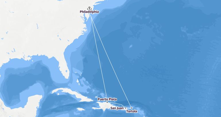 كروز البحر الكاريبي : الولايات المتحدة، جزر فيرجن البريطانية، جزر فيرجن، بورتو ريكو، جمهورية الدومينيكان - نرويجيان بيرل الميناء : فيلادلفيا المدة : 11 أيام السفينة : نرويجيان بيرل الشركة : نرويجيان كروز لاين مسار الرحلة: فيلادلفيا، تورتولا، شارلوت أمالي سانت توماس، سان جوان، ميناء بلاتا، فيلادلفيا إكتشف المسار