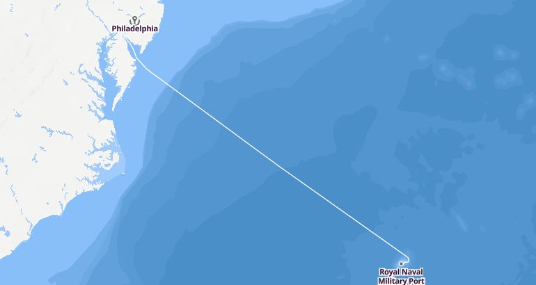 أمريكا : الولايات المتحدة، برمودا - نرويجيان بيرل الميناء : فيلادلفيا المدة : 6 أيام السفينة : نرويجيان بيرل الشركة : نرويجيان كروز لاين مسار الرحلة: فيلادلفيا، الموانئ العسكرية للبحرية الملكية، الموانئ العسكرية للبحرية الملكية، فيلادلفيا إكتشف المسار