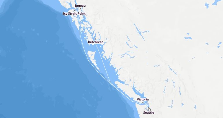 الوجهة ألاسكا : الولايات المتحدة، ألاسكا، كندا - أنثم أوف ذا سيز الميناء : سياتل المدة : 8 أيام السفينة : أنثم أوف ذا سيز الشركة : رويال كاريبيان انترناشيونال مسار الرحلة: سياتل، كيتشيكان، نقطة مضيق الجليدية، جونو، فيكتوريا، سياتل إكتشف المسار