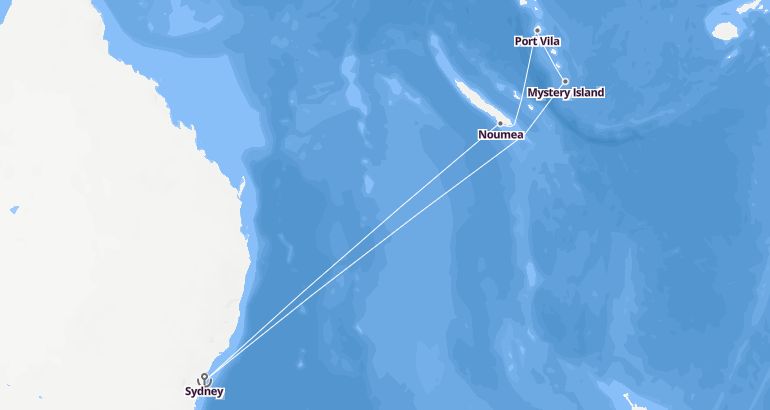 ساحل المحيط الهادئ : أستراليا، كاليدونيا الجديدة، فانواتو - أنثم أوف ذا سيز الميناء : سيدني المدة : 9 أيام السفينة : أنثم أوف ذا سيز الشركة : رويال كاريبيان انترناشيونال مسار الرحلة: سيدني، نوميا، بورت فيلا، جزيرة ميستآري، سيدني إكتشف المسار