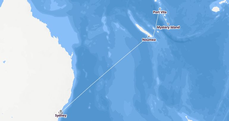 ساحل المحيط الهادئ : أستراليا، كاليدونيا الجديدة، فانواتو - أنثم أوف ذا سيز الميناء : سيدني المدة : 10 أيام السفينة : أنثم أوف ذا سيز الشركة : رويال كاريبيان انترناشيونال مسار الرحلة: سيدني، نوميا، جزيرة ميستآري، بورت فيلا، سيدني إكتشف المسار
