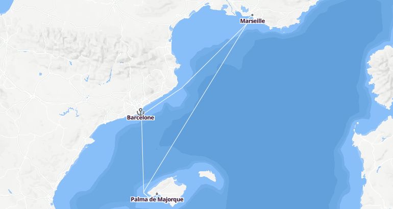 البحر المتوسط : إسبانيا، فرنسا - هارموني أوف ذا سيز الميناء : برشلونة المدة : 4 أيام السفينة : هارموني أوف ذا سيز الشركة : رويال كاريبيان انترناشيونال مسار الرحلة: برشلونة، ميورقة، مرسيليا، برشلونة إكتشف المسار