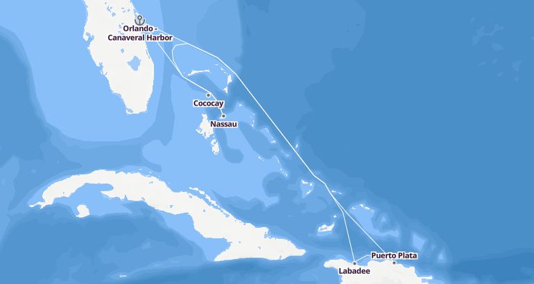 رحلات البحر الكاريبي - جزر الهند الغربية جزر الأنتيل : الولايات المتحدة، هايتي، جمهورية الدومينيكان، باهاماس - هارموني أوف ذا سيز الميناء : أورلاندو بورت كانافيرال المدة : 8 أيام السفينة : هارموني أوف ذا سيز الشركة : رويال كاريبيان انترناشيونال مسار الرحلة: أورلاندو بورت كانافيرال، لابادي، ميناء بلاتا، ناسو، كوكوكاي، أورلاندو بورت كانافيرال إكتشف المسار
