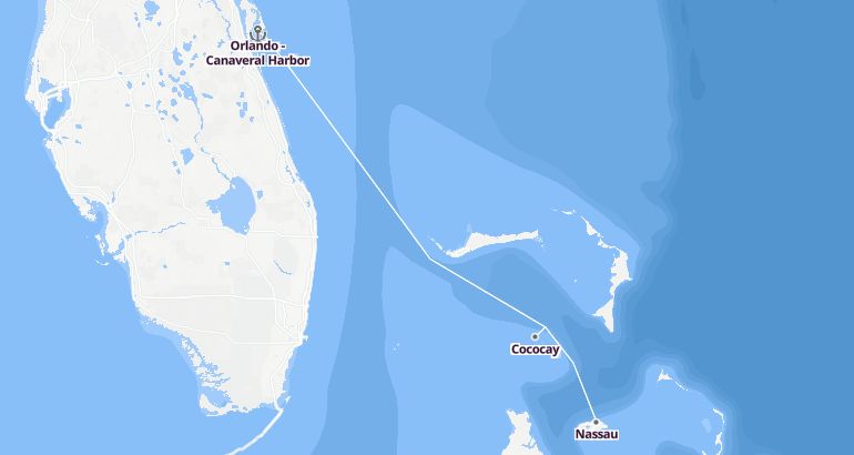 مسار الرحلة: أورلاندو بورت كانافيرال، كوكوكاي، ناسو، أورلاندو بورت كانافيرال