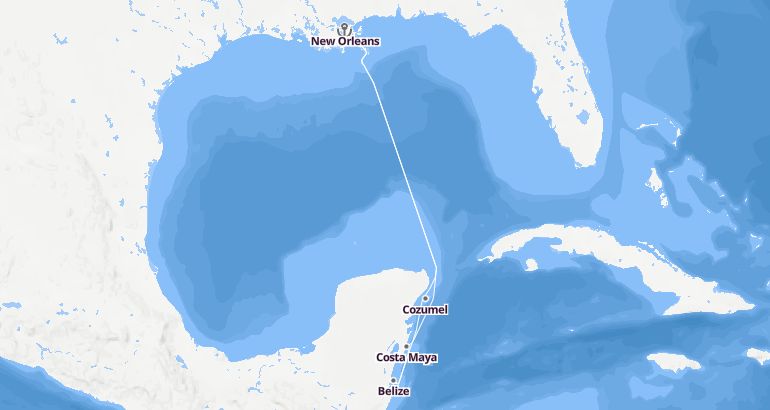 منطقة البحر الكاريبي - المكسيك - كوبا : الولايات المتحدة، المكسيك، بليز - مارينار أوف ذا سيز الميناء : نيو أورليانز المدة : 7 أيام السفينة : مارينار أوف ذا سيز الشركة : رويال كاريبيان انترناشيونال مسار الرحلة: نيو أورليانز، كوستا مايا، بليز، كوزوميل، نيو أورليانز إكتشف المسار