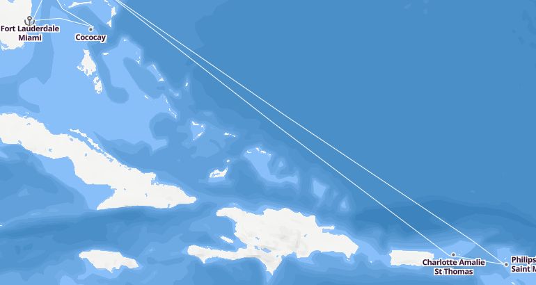 رحلات البحر الكاريبي - جزر الهند الغربية جزر الأنتيل : الولايات المتحدة، باهاماس، جزر فيرجن، جزر الأنتيل الهولندية - أواسيس أوف ذا سيز الميناء : قلعة لودرديل - ميامي المدة : 8 أيام السفينة : أواسيس أوف ذا سيز الشركة : رويال كاريبيان انترناشيونال مسار الرحلة: قلعة لودرديل - ميامي، كوكوكاي، شارلوت أمالي سانت توماس، فيليبسبورج سان مارتن، قلعة لودرديل - ميامي إكتشف المسار
