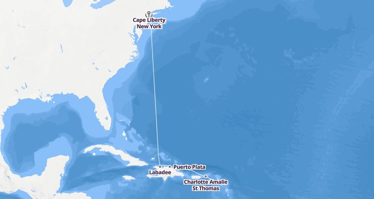 رحلات البحر الكاريبي - جزر الهند الغربية جزر الأنتيل : الولايات المتحدة، هايتي، جمهورية الدومينيكان، جزر فيرجن، أنتيغوا وبربودا، جزر الأنتيل الهولندية - أوديسي البحار الميناء : كيب ليبرتي نيويورك المدة : 13 أيام السفينة : أوديسي البحار الشركة : رويال كاريبيان انترناشيونال مسار الرحلة: كيب ليبرتي نيويورك، لابادي، ميناء بلاتا، شارلوت أمالي سانت توماس، سان جونس، فيليبسبورج سان مارتن، كيب ليبرتي نيويورك إكتشف المسار