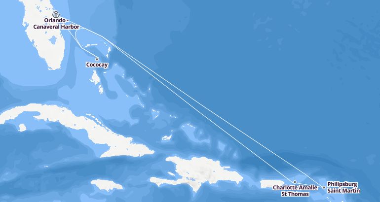 رحلات البحر الكاريبي - جزر الهند الغربية جزر الأنتيل : الولايات المتحدة، باهاماس، جزر فيرجن، جزر الأنتيل الهولندية - أوتوبيا أوف ذا سيس الميناء : أورلاندو بورت كانافيرال المدة : 8 أيام السفينة : أوتوبيا أوف ذا سيس الشركة : رويال كاريبيان انترناشيونال مسار الرحلة: أورلاندو بورت كانافيرال، كوكوكاي، شارلوت أمالي سانت توماس، فيليبسبورج سان مارتن، أورلاندو بورت كانافيرال إكتشف المسار
