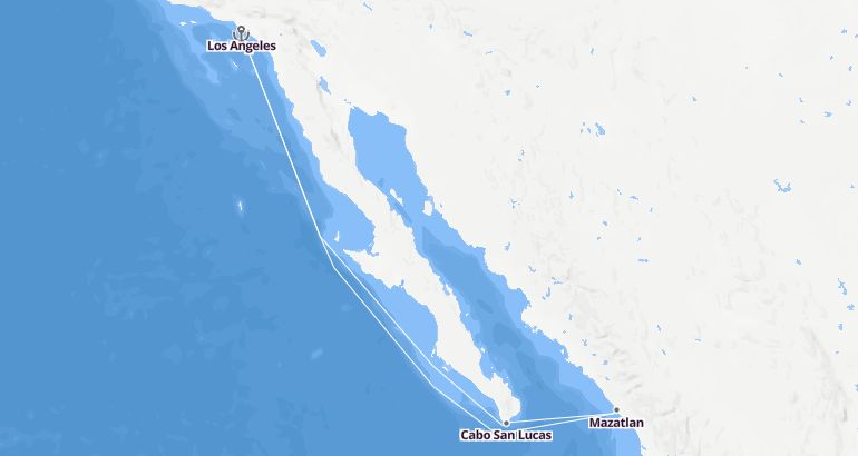 منطقة البحر الكاريبي - المكسيك - كوبا : الولايات المتحدة، المكسيك - فواياجر أوف ذا سيز الميناء : لوس أنجلوس المدة : 8 أيام السفينة : فواياجر أوف ذا سيز الشركة : رويال كاريبيان انترناشيونال مسار الرحلة: لوس أنجلوس، مازاتلان، كابو سان لوكاس، كابو سان لوكاس، لوس أنجلوس إكتشف المسار