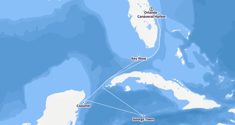 Itinerary: Orlando -Canaveral Harbor, Key West, Fun day at sea, Cozumel, George Town, Fun day at sea, Fun day at sea, Orlando -Canaveral Harbor