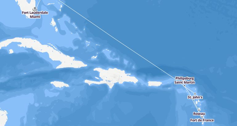 Itinerary: Fort Lauderdale Miami, Fun day at sea, Fun day at sea, St. John's, Roseau, Fort de France, Philipsburg Saint Martin, Fun day at sea, Fun day at sea, Fort Lauderdale Miami