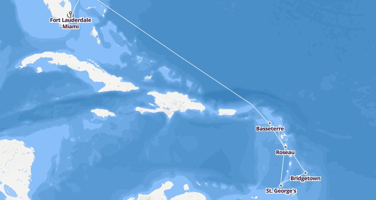 Itinerary: Fort Lauderdale Miami, Fun day at sea, Fun day at sea, Basseterre, Bridgetown, St. George's, Roseau, St. John's, Fun day at sea, Fun day at sea, Fort Lauderdale Miami