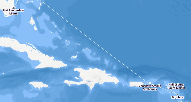 Itinerary: Fort Lauderdale Miami, Fun day at sea, Fun day at sea, Charlotte Amalie St Thomas, St. John's, Philipsburg Saint Martin, Fun day at sea, Fun day at sea, Fort Lauderdale Miami