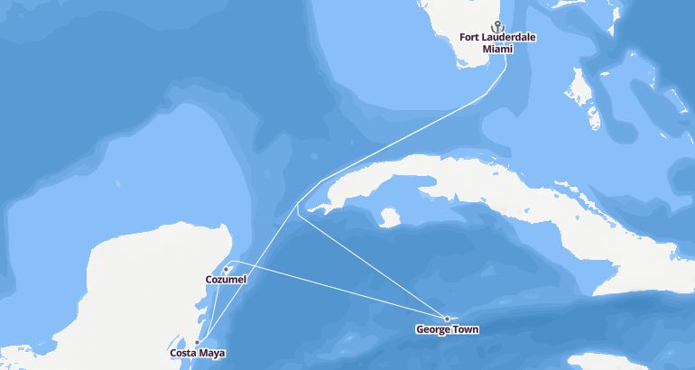Itinerary: Fort Lauderdale Miami, Fun day at sea, George Town, Cozumel, Costa Maya, Fun day at sea, Fort Lauderdale Miami