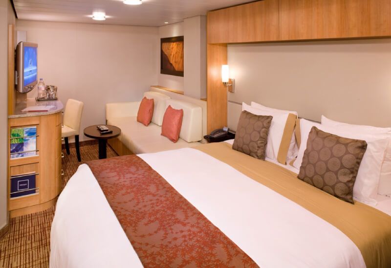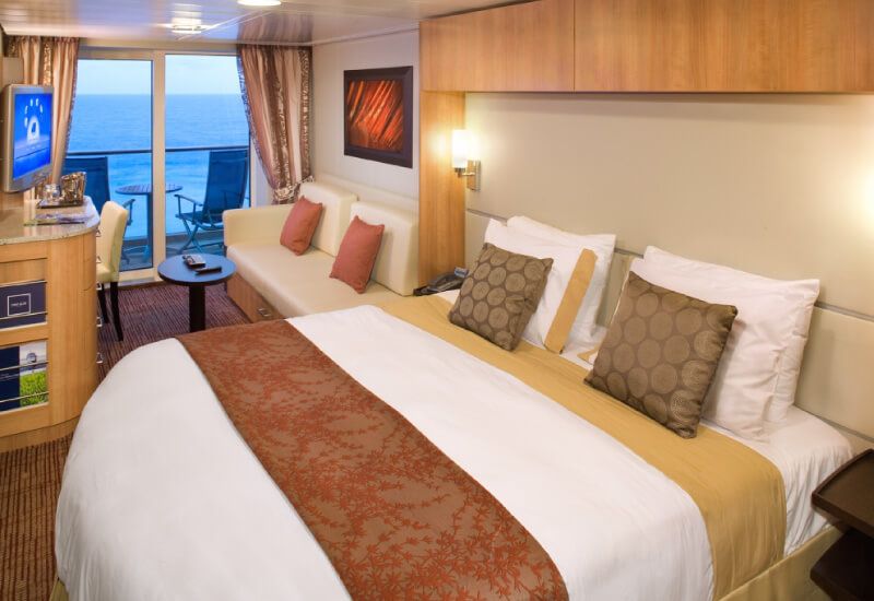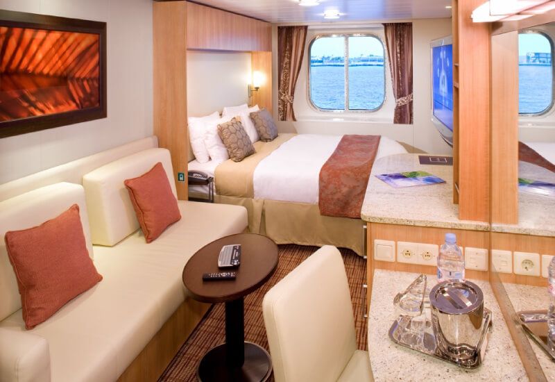 There is no doubt that the best cabins on Celebrity Solstice are  the balcony cabins. Less spacious than the suites, they offer an incredible quality/price ratio. What could be better than relaxing while enjoying the sea air on a private deckchair in your room? In addition, balcony cabins offer you optimal comfort with a private bathroom in which you will enjoy some small attention reserved by the American company. The lounge and bedroom area are also very well equipped giving you total freedom in your cabin. A safe is at your disposal if you wish to protect valuables. By opting for a balcony cabin, you will also have access to butler service, priority boarding at ports of call and a 24-hour concierge service. Finally, if you want to benefit from more services, book an AquaClass cabin for an unlimited access to the spa. Note that these cabins are accessible to people with reduced mobility.