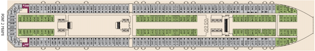 Fortuna is 272 meters long and has 17 decks (13 of which are reserved for passengers). Its 1358 cabins and 464 balconies accommodate more than 3470 passengers and 1027 crew members.