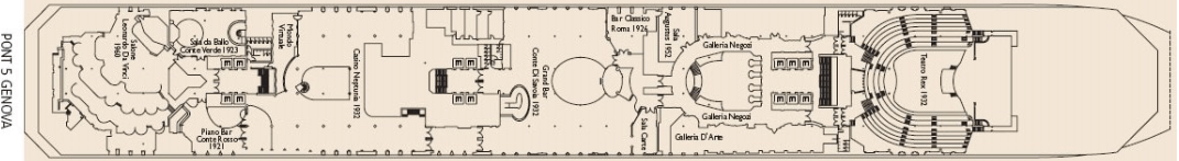 Each bar is unique and guarantees a good time with your loved ones over a drink. There are 10 bars to choose from, including the Piano Bar Conte Rosso with its unique decor, the Lounge Conte di Savoia, the largest bar on the ship, with its large dance floor, the Classico Roma bar to smoke your cigar with a good cognac and the Conto Verde bar for a fun evening.