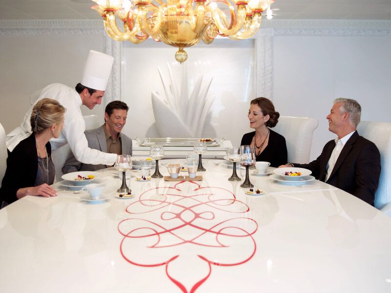 Indeed the luxury ship spoils you with sumptuous restaurants on board. You will discover a refined and delicate cuisine that will impress you. The ship has 6 gourmet and specialty restaurants. You will have the unique opportunity to taste the dishes of the renowned chef Jacques Pépin. Renowned for his books, culinary shows and prestigious history (he served General de Gaulle), Chef Pépin oversees the ship's restaurants. Jacques Pépin has surprising recipes in store for you, ranging from revisited classics to innovative dishes.