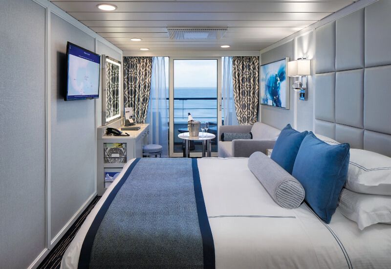 There are 2 categories of balcony cabins on board MS Sirena: Veranda cabins and Concierge Level Veranda cabins. One thing is certain, these two types of cabins have a lot in common. First of all, they have the same facilities for a comfortable and luxurious cruise (private bathroom, dressing table, TV screen with DVD player, mini-bar, etc.). In addition, they have a superb bay window which gives access to a private balcony. You will be charmed by the morning and evening sunrises and sunsets in these cabins of about 20m².