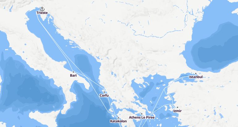Itinerary: Trieste, Fun day at sea, Katakolon, Athens Le Piree, Izmir, Istanbul, Fun day at sea, Corfu, Bari, Trieste