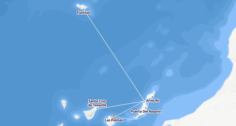 Itinerary: Las Palmas, Puerto Del Rosario, Santa Cruz de Tenerife, Puerto Del Rosario, Funchal, Fun day at sea, Arrecife, Las Palmas
