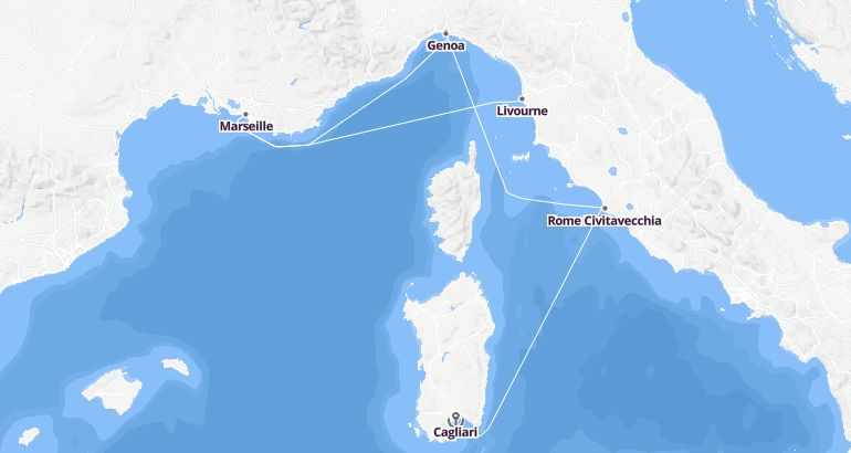 Itinerary: Cagliari, Rome Civitavecchia, Genoa, Marseille, Livourne
