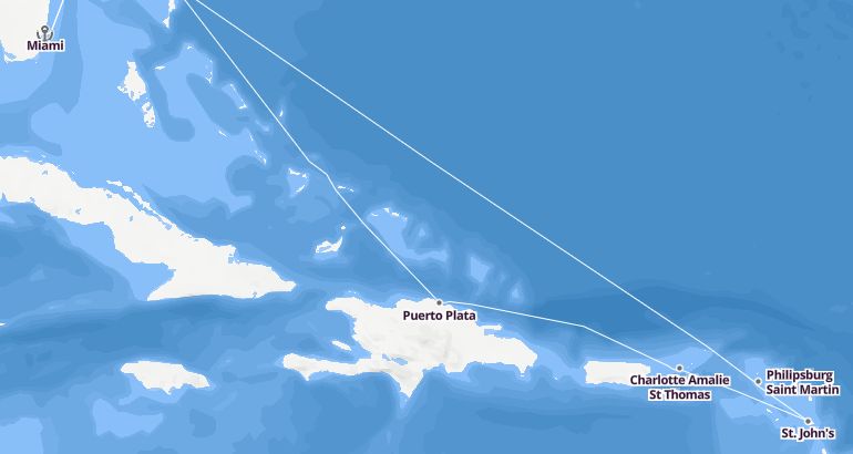 Itinerary: Miami, Fun day at sea, Puerto Plata, Charlotte Amalie St Thomas, St. John's, Philipsburg Saint Martin, Fun day at sea, Fun day at sea, Miami