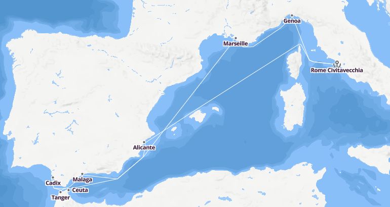 Itinerary: Rome Civitavecchia, Genoa, Marseille, Olbia, Rome Civitavecchia