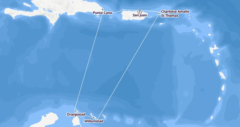 Itinerary: San Juan, Punta Cana, Oranjestad, Willemstad, Fun day at sea, Charlotte Amalie St Thomas, Tortola, San Juan